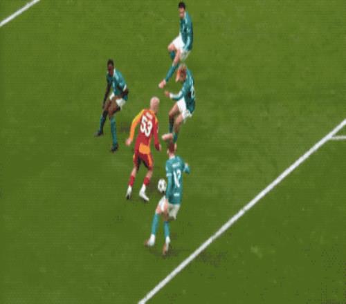 上半場補時階段,加拉塔薩雷的高位逼搶收到效果,赫拉芬貝赫被斷,之后他在背后放倒奧斯梅恩,還好是在禁區(qū)外。