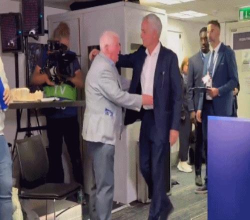穆里尼奧重返斯坦福橋,87歲的Brian Pullman特意趕到媒體會(huì)議室,看望穆里尼奧。看到Brian Pullman,穆里尼奧擁抱老者,笑著說:“我最喜歡吃的餅干呢?”