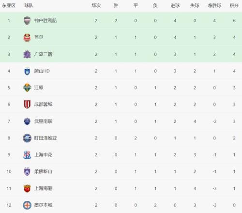 隨著申花11,神戶10絕殺,亞冠最新積分榜出爐:蓉城飆升至第6