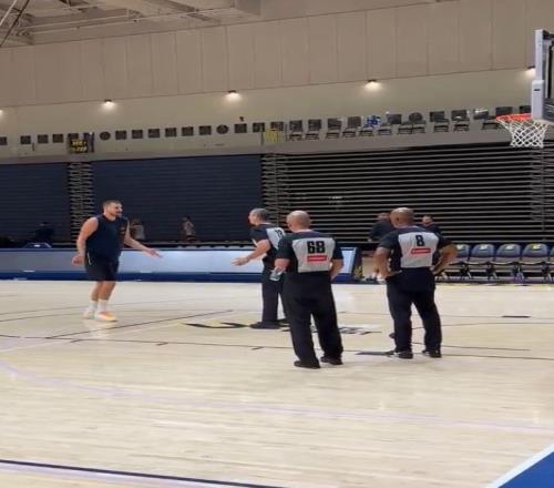 掘金請(qǐng)三名NBA裁判執(zhí)法隊(duì)內(nèi)訓(xùn)練賽,約基奇與他們進(jìn)行交談