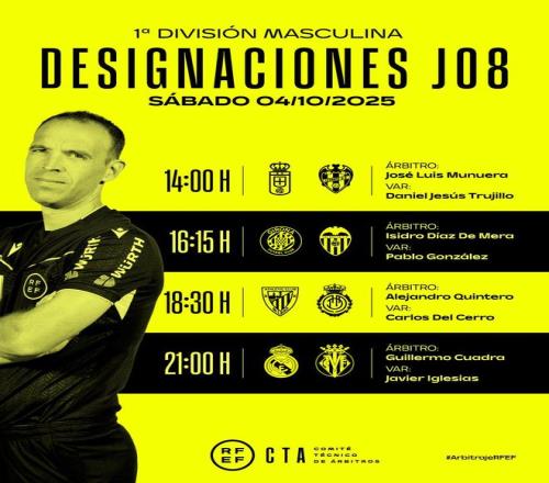 雷速體育10月3日?qǐng)?bào)道宣稱 西甲官方公布了當(dāng)?shù)貢r(shí)間10月4日四場西甲聯(lián)賽的裁判安排,吉列爾莫·夸德拉主哨皇馬對(duì)陣比利亞雷亞爾的比賽。