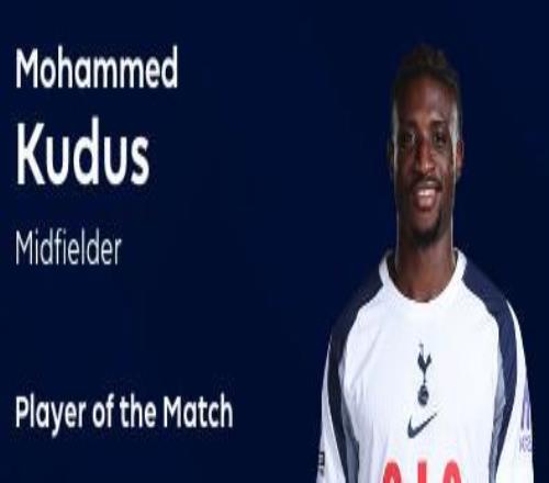 傳射建功,庫杜斯當(dāng)選利茲聯(lián)vs熱刺全場最佳球員