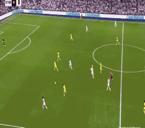 第73分鐘,利用皇馬禁區(qū)弧頂位置的漏洞,米卡烏塔澤遠(yuǎn)射為黃色潛水艇扳回一城。