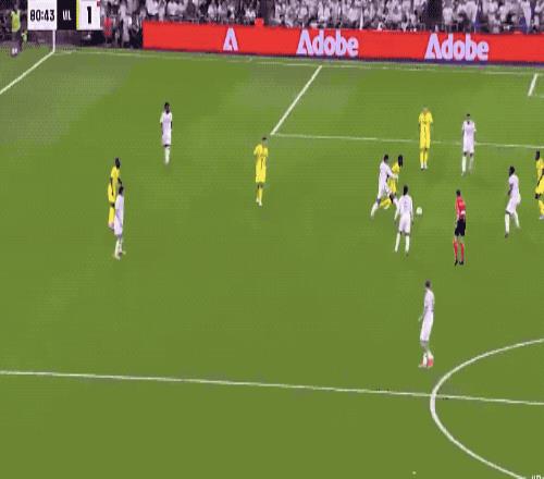 第81分鐘,皇馬打出眼花繚亂的傳球,和迪亞斯配合后,姆巴佩也破門得分。