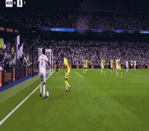 第47分鐘,姆巴佩頭球擺渡,維尼修斯一個(gè)假動(dòng)作晃開(kāi)防守,之后的射門被后衛(wèi)擋了一下產(chǎn)生變向,門將撲救不及。