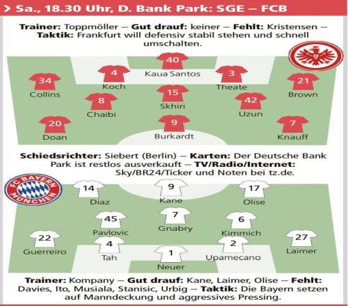 雷速體育10月4日?qǐng)?bào)道宣稱 北京時(shí)間10月5日00:30,德甲第6輪,法蘭克福坐鎮(zhèn)主場(chǎng)迎戰(zhàn)德甲領(lǐng)頭羊拜仁慕尼黑,本場(chǎng)比賽開(kāi)始之前,德國(guó)媒體《慕尼黑日?qǐng)?bào)》預(yù)測(cè)了雙方的首發(fā)陣容,拜仁慕尼黑由目前腳感火熱的凱恩領(lǐng)銜,法蘭克福方面會(huì)繼續(xù)首發(fā)連場(chǎng)進(jìn)球的土耳其小將詹·烏尊。