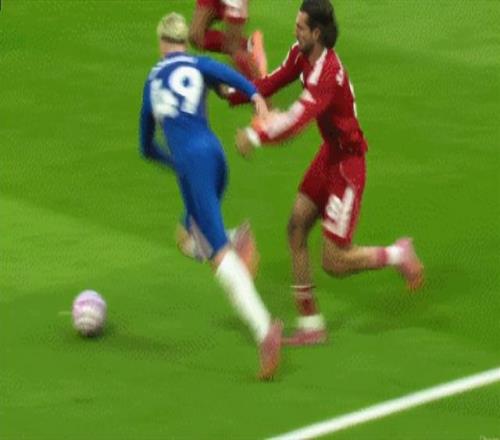 第39分鐘,場(chǎng)上出現(xiàn)爭(zhēng)議一幕,加納喬帶球至對(duì)手禁區(qū)內(nèi),索博斯洛伊對(duì)抗致其倒地,疑似有個(gè)推人動(dòng)作,主裁判安東尼-泰勒示意沒有點(diǎn)球!