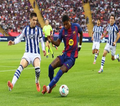 在2025-26賽季西甲第8輪,巴塞羅那客場對陣塞維利亞。拉什福德在上半場最后時刻推射破門,打入了西甲處子球!