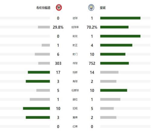 不甘心在主場(chǎng)輸球的布倫特福德,最后時(shí)刻大舉壓上給曼城的后防線施壓,但面對(duì)三條線集體回防的藍(lán)月軍團(tuán),沒有能夠創(chuàng)造出有威脅的機(jī)會(huì),最終只能接受在主場(chǎng)輸球的結(jié)局,沒有能夠獲得積分。