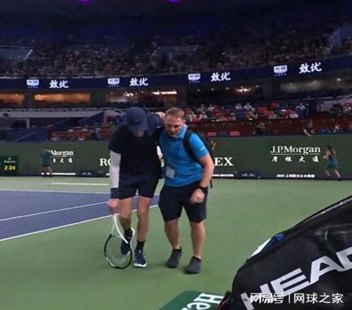 辛納在決勝盤2比3落后時(shí),因抽筋嚴(yán)重實(shí)在無(wú)法堅(jiān)持,不得不選擇了退賽,最后是被人架著走出賽場(chǎng)的。