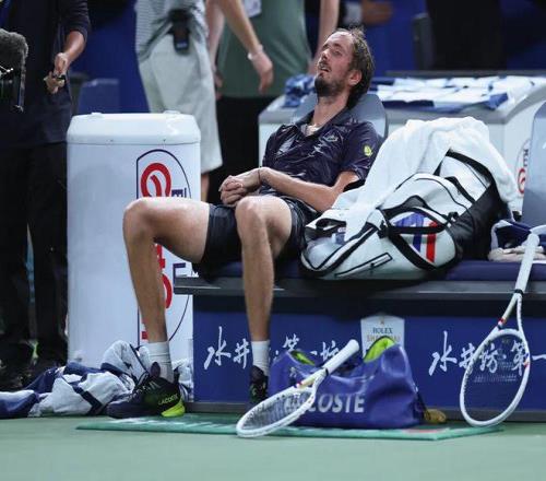 搶七之前,梅德維德夫右腿抽筋。主裁讓他的理療師進(jìn)場(chǎng),但梅德維德夫沒有接受處理,自己簡(jiǎn)單拉伸緩解后,以進(jìn)攻為主,幾乎放棄防守地打完了第二盤。勒納·錢追回一盤,雙方進(jìn)入決勝盤。