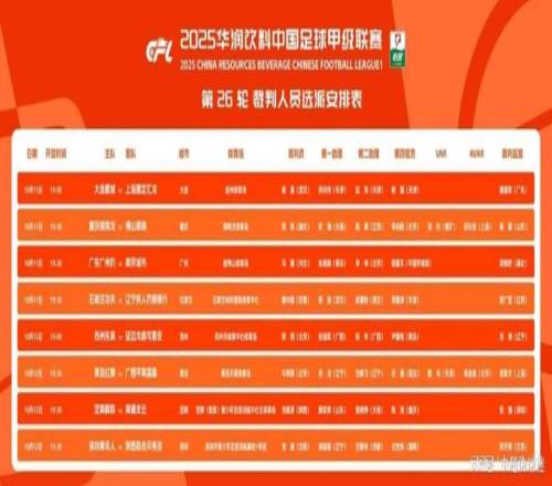 北京時(shí)間10月11日,中甲聯(lián)賽第26輪將于今晚打響。剛剛,本輪裁判選派安排表出爐,2場(chǎng)事關(guān)沖超和保級(jí)的關(guān)鍵戰(zhàn)啟用VAR,有多名中超裁判執(zhí)哨。