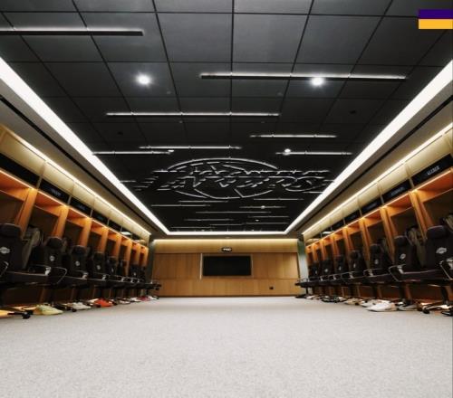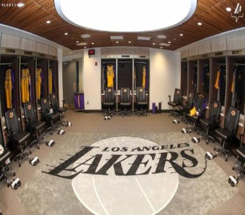 賽前,湖人官方曬出了全新更衣室的圖集,今夏球隊做出了全面升級,現(xiàn)在屋頂上有一個大的湖人logo,球員們的椅子也都換了。