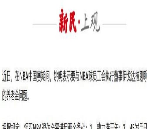 新民晚報:(姚明開始領養(yǎng)老金了2025.10.13)