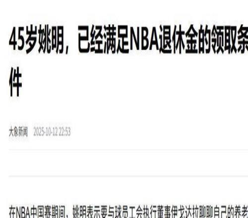 大象新聞:(45歲姚明,已經滿足NBA退休金的領取條件2025.10.12)