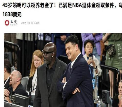 上觀新聞:(45歲姚明可以領養(yǎng)老金了!已滿足NBA退休金領取條件,每月1838美元2025.10.13)