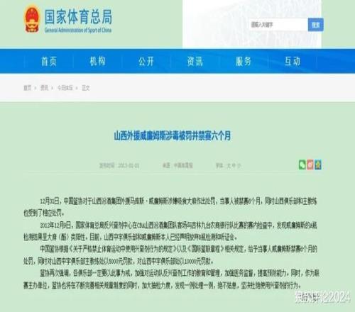 中國籃協(xié)根據(jù)《關于嚴格禁止體育運動中使用興奮劑行為的規(guī)定》以及《國際籃聯(lián)章程》相關規(guī)定,給予當事人威廉姆斯禁賽6個月的處罰,同時對山西中宇俱樂部主教練處以5000元罰款,對山西中宇俱樂部處以10000元罰款。