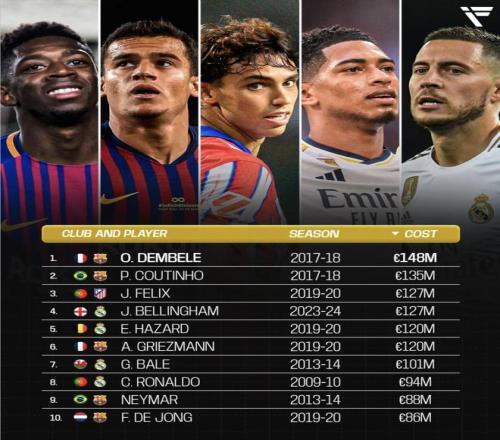 登貝萊、格列茲曼、德容、菲利克斯居中。高價(jià)并非原罪,可用性、戰(zhàn)術(shù)適配與持續(xù)產(chǎn)出決定回報(bào),年齡曲線與合同結(jié)構(gòu)也直接影響性價(jià)比。