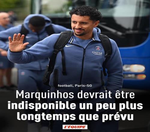 馬爾基尼奧斯在法甲第5輪巴黎0-1負(fù)于馬賽的比賽中左股四頭肌受傷,最初預(yù)計將缺陣兩到三周。