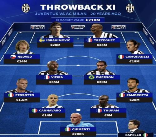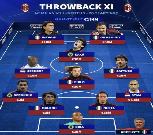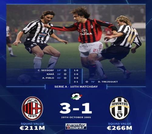 近日,知名足球數(shù)據(jù)網(wǎng)站德國(guó)轉(zhuǎn)會(huì)市場(chǎng)的一組回顧數(shù)據(jù)引發(fā)討論,復(fù)盤了2005年10月29意甲第10輪AC米蘭對(duì)陣尤文圖斯的經(jīng)典較量。