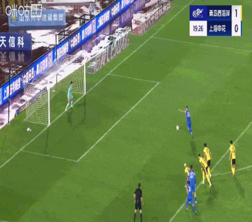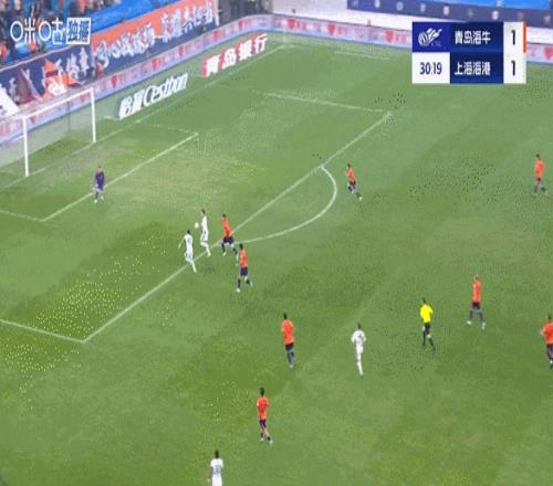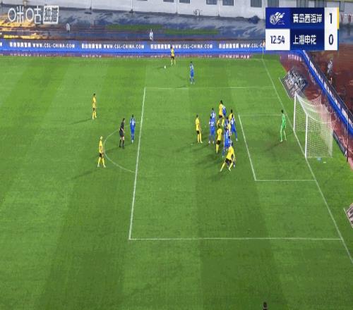 上半場第11分鐘,青島海牛的薩里奇助攻,蘭克爾禁區(qū)內(nèi)爆射率先破門。
