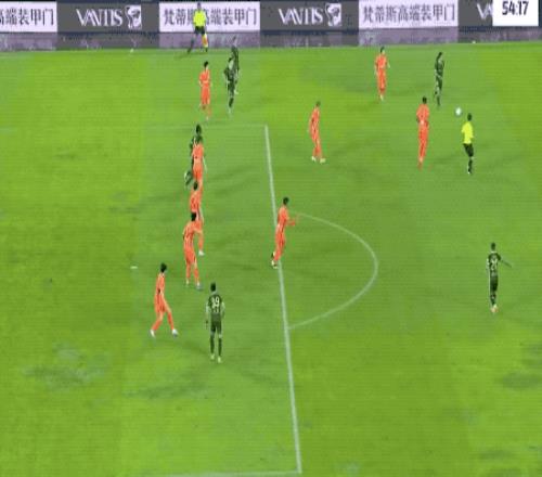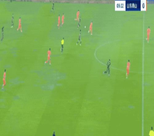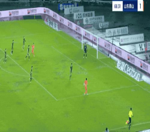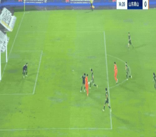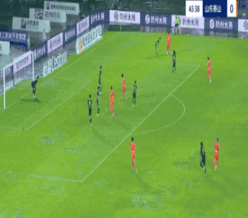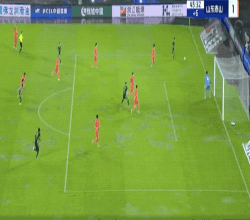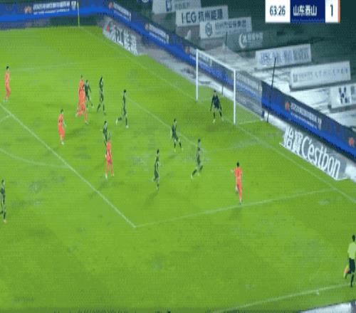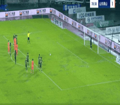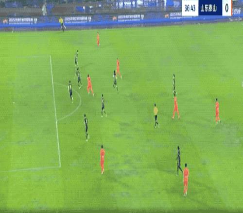第36分鐘,黃政宇禁區(qū)外突然起腳遠(yuǎn)射,皮球直奔死角而去,趙博騰空而起,再次貢獻(xiàn)精彩撲救。