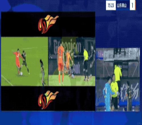 第76分鐘,VAR再度介入,和程進(jìn)對抗后,李源一倒在了禁區(qū)內(nèi),裁判回看后改判點(diǎn)球。