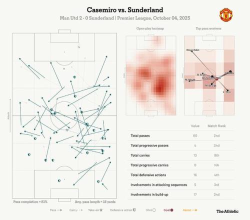 國際比賽日前,曼聯(lián)2-0擊敗桑德蘭,這場勝利緩解了阿莫林的帥位壓力??ㄈ琢_在本場比賽中的表現(xiàn)(如下方球員數(shù)據(jù)面板所示),進(jìn)一步凸顯了他在球隊(duì)中的重要性。