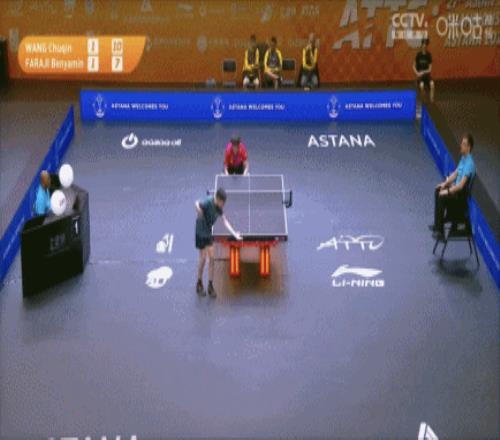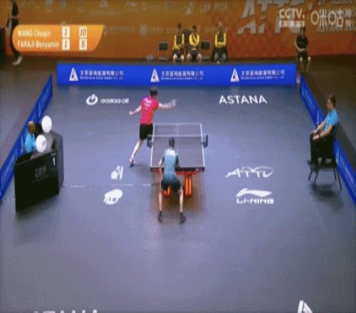 本雅明的正手手感好,無論什么位置都有對應(yīng)的技術(shù)組合,比如正手反拉后配合銜接?;厍蛎黠@低、平,幾乎貼網(wǎng)(所以有好幾次擦網(wǎng)),由于以加轉(zhuǎn)弧圈球?yàn)橹?,其回球常見半出臺(tái)或近網(wǎng)區(qū)落點(diǎn),王楚欽很難合力,因此在反拉本雅明的加轉(zhuǎn)弧圈環(huán)節(jié),失誤較多。