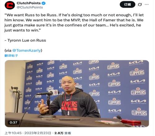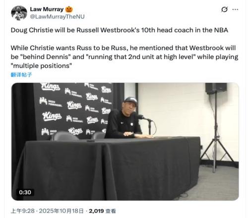“快船主教練泰倫·盧在2023年說(shuō):我們希望威少做自己;掘金前主教練馬龍?jiān)?024年說(shuō):我依然希望威少做自己;國(guó)王主教練克里斯蒂在2025年說(shuō):我只希望威少做自己!我們好像陷入了循環(huán)!”