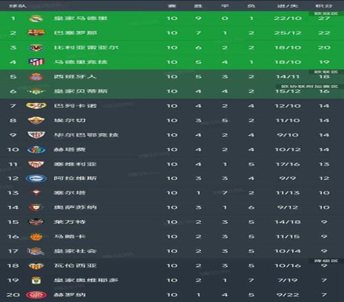 北京時間10月28日,隨著馬競2-0戰(zhàn)勝皇家貝蒂斯,西甲第10輪結(jié)束了所有比賽,我們一起看看最新積分榜變動!