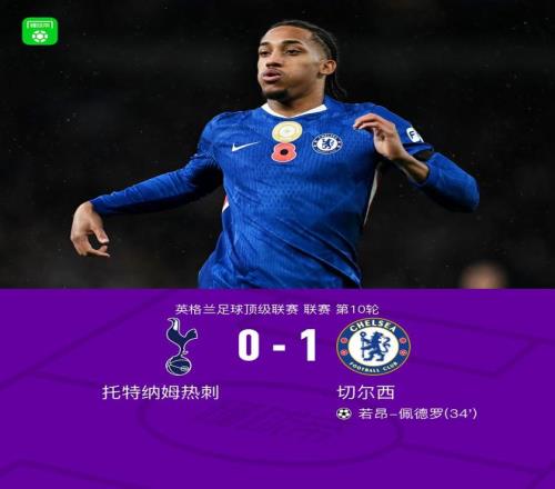 北京時(shí)間11月2日,英格蘭足球超級聯(lián)賽第10輪,托特納姆熱刺主場迎戰(zhàn)切爾西。上半場,凱塞多搶斷后助攻,若昂-佩德羅破門。下半場最后時(shí)刻,吉滕斯和若昂-佩德羅相繼錯(cuò)失良機(jī)。全場比賽結(jié)束,切爾西1-0客場擊敗熱刺。