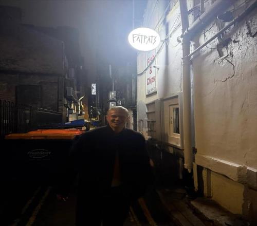 照片中可以看到,哈蘭德點(diǎn)了一份燒鵝與叉燒的拼盤,哈蘭德還站在這家中餐店門口拍了照片,背景上用中文寫著“臘味飯外賣”。