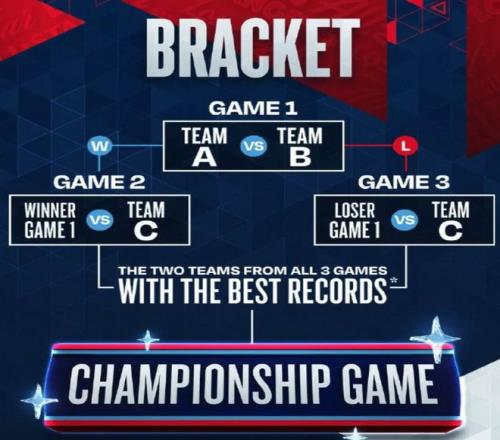 這3支球隊要進行3場循環(huán)賽,戰(zhàn)績最好的兩支球隊進入最后1場冠軍賽,每場比賽都是12分鐘。如果3支球隊都打成了1勝1負,那么就看凈勝分,選出兩隊進入冠軍賽。