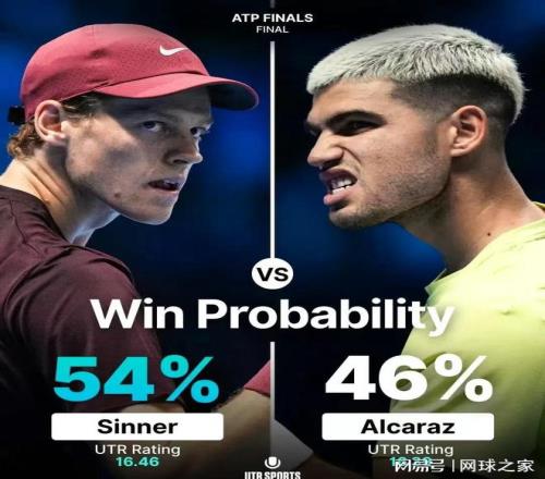 有兩個(gè)原因:一、博彩公司力挺辛納,在奪冠賠率方面對(duì)他開出1賠1.53,領(lǐng)先阿爾卡拉斯的1賠2.62;二、UTR Sports在亮出這場(chǎng)年終總決賽的冠軍爭(zhēng)奪戰(zhàn)的獲勝支持率時(shí),辛納也以54%力壓阿爾卡拉斯的46%。