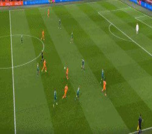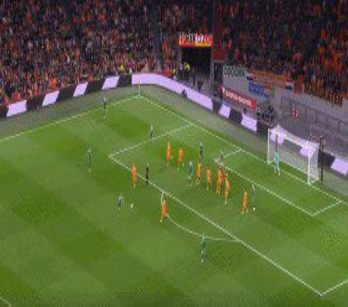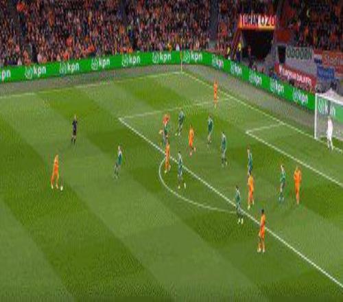 16’荷蘭前場(chǎng)斷球,德容直塞,賴因德斯直面門(mén)將射入遠(yuǎn)角,荷蘭1比0。