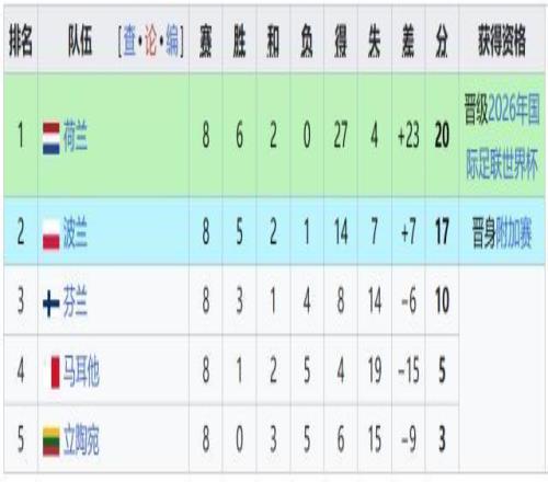 今晨世預(yù)賽歐洲區(qū)G組末輪,荷蘭主場(chǎng)4比0擊敗立陶宛,順利拿到直接出線的資格。本組波蘭隊(duì)進(jìn)入附加賽。