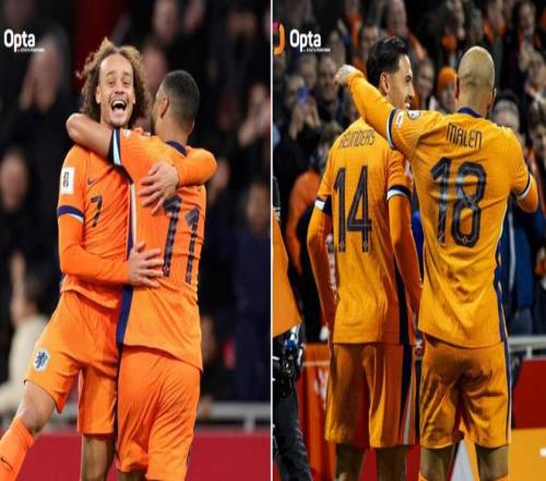 本場比賽,荷蘭分別由效力于曼城的賴因德斯、效力于利物浦的加克波、效力于托特納姆熱刺的哈維-西蒙斯以及效力于阿斯頓維拉的馬倫取得進(jìn)球,根據(jù)Opta的統(tǒng)計(jì),這是荷蘭國家隊(duì)歷史上第一次在單場比賽中有四位來自英超聯(lián)賽的球員分別破門。