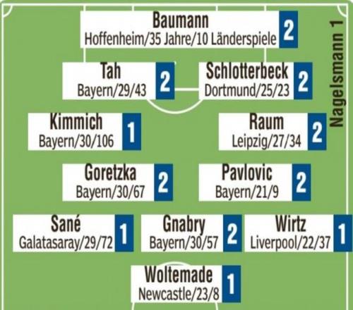 后衛(wèi):基米希(1)、若納坦-塔(2)、施洛特貝克(2)、勞姆(2)