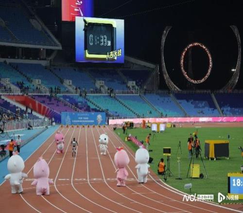 你猜誰贏了飛人大戰(zhàn)前,十五運(yùn)會(huì)吉祥物與機(jī)器人競賽百米跑