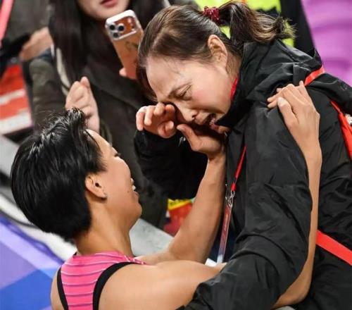 奪冠之后的劉景揚第一時間奔向看臺和媽媽緊緊擁抱。媽媽熱淚盈眶,她非常激動地說著:“她連教練都沒有,她太艱難了,沒有人看好她,你們不知道她很不容易。你知道她經(jīng)歷了多少嗎?人家都不看好她。太不容易了?!?/p>