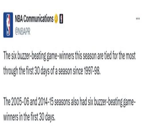 如此高的收視表現(xiàn),也與開季第一個月的精彩比賽有關(guān)。本賽季前30天已出現(xiàn)6次壓哨絕殺制勝球,追平了自1997-98賽季以來的同期最高紀(jì)錄。2005-06賽季和2014-15賽季的前 30 天同樣各誕生過6次壓哨絕殺。