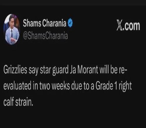 前幾天灰熊100-108不敵馬刺的比賽,莫蘭特在此役首節(jié)遭遇右小腿一級(jí)拉傷,至少需要休戰(zhàn)兩周時(shí)間,他已連續(xù)兩場(chǎng)高掛免戰(zhàn)牌,包括如上所述球隊(duì)大勝國(guó)王的比賽。