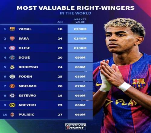 最近德國轉會市場發(fā)布了世界范圍右邊鋒身價榜,亞馬爾以2億歐元領跑,薩卡、奧利斯位列前排。18歲超新星的高預期與英超即戰(zhàn)力同臺比拼,爭議點不少:傷停影響要不要打折?多位置使用算不算加分?這些身價到底值不值,誰被抬高、誰又被低估——看近期出勤與貢獻,答案見下。