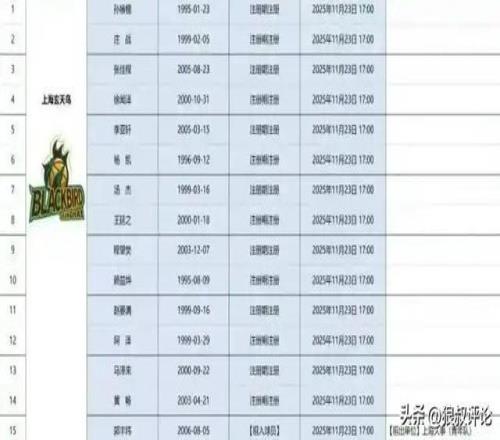 北京時(shí)間11月23日,《東方體育日?qǐng)?bào)》記者薛思佳報(bào)道,NBL新軍上海玄天鳥球員名單流出,前CUBA全明星球員、百萬網(wǎng)紅球員賴益燁以及前CBA球員湯杰在列。