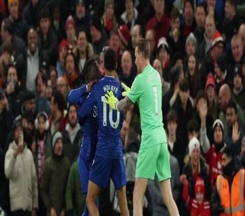 被罰下后,身穿27號球衣的蓋耶怒不可遏,若非門將喬丹·皮克福德及時上前勸阻,他極有可能沖向基恩再度動手。