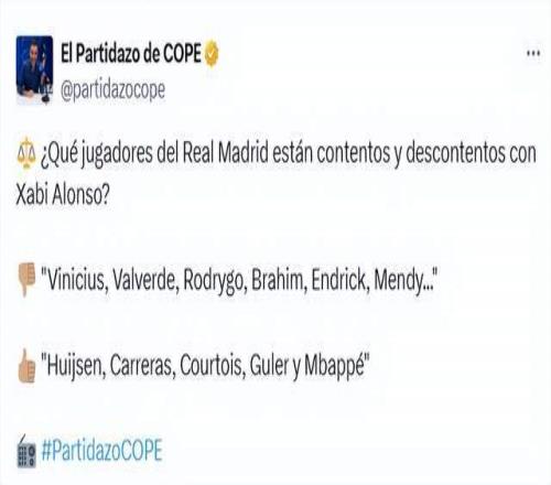“對(duì)阿隆索不滿的球員,有維尼修斯、巴爾韋德、羅德里戈、布拉欣-迪亞斯、恩德里克、門迪……”