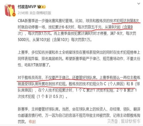 相比于上賽季,新賽季在針對(duì)球員和教練員技術(shù)犯規(guī)一事上,籃協(xié)還是抓得非常嚴(yán)厲的。上賽季,CBA球員和教練員要累計(jì)達(dá)到7次以上,才會(huì)被罰款,技術(shù)犯規(guī)達(dá)到10次以上,才會(huì)被重罰。而且,在禁賽方面,上賽季要達(dá)到9次以上,才會(huì)被禁賽。很顯然,籃協(xié)和CBA的做法已經(jīng)非常明顯了,他們不希望新賽季會(huì)再次出現(xiàn)像上賽季那樣的情況,球員和教練員都必須恪守新規(guī)。