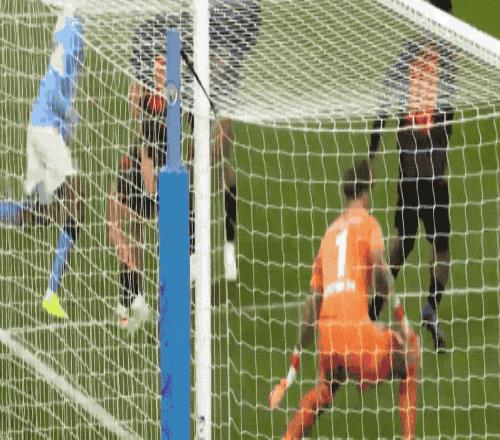 場邊,哈蘭德也開始熱身,但還沒等到哈蘭德登場,比分已經(jīng)變成0-2了,第54分鐘,格里馬爾多45度傳中,??肆喊⒖?,頭槌破門。