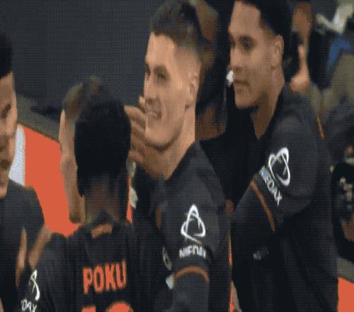 勒沃庫森球員興奮慶祝,另一邊,尼科·岡薩雷斯和薩維尼奧已經(jīng)有些爭吵,哈蘭德在場面愣在原地。